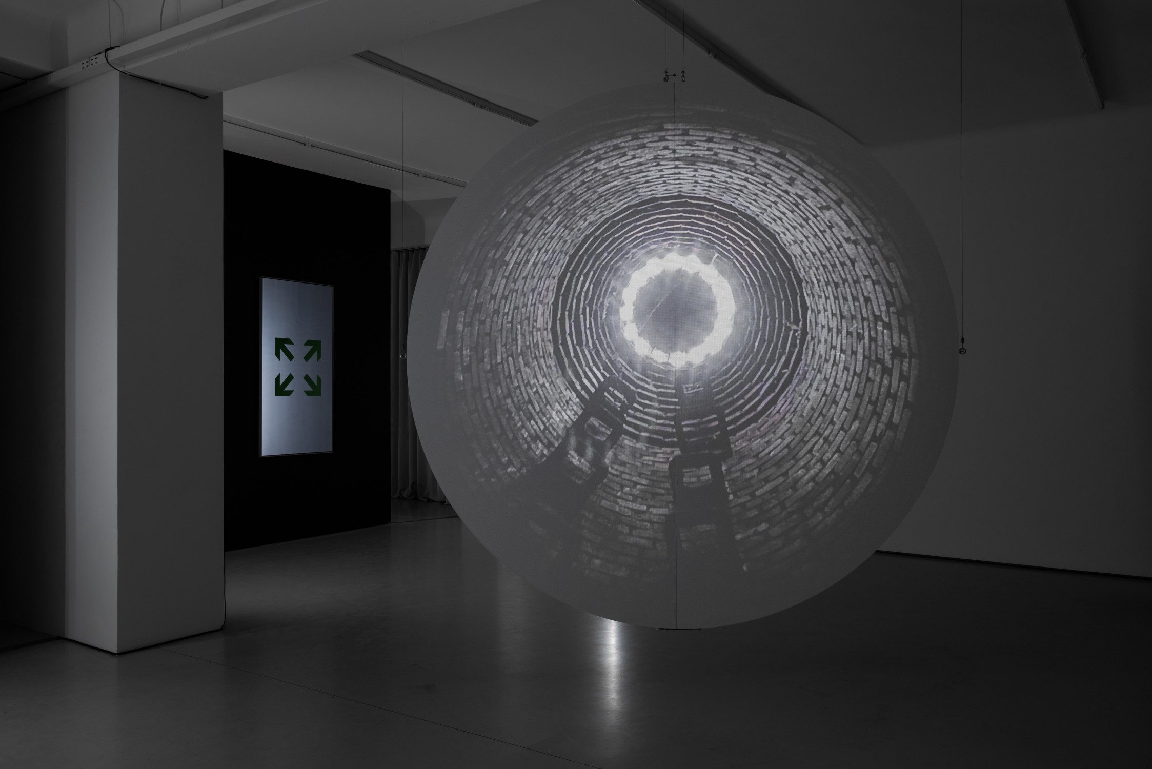 Exit signs, in other words, can be misleading. What behaviour do they direct in directing us toward something? Did Plato’s cave have exit signs? Exit signs imply the possibility of transition from one space to another. They imply a transition from the falsehood of the cave’s flame, to light’s revelation. But what light reveals still asks of us some judgement. It is not enough to sense the world, we must also make sense of the world. Leinkauf’s Retroreflex is a series of signs that mimic the aesthetic of exit signs, as well as the material characteristic of light reflection. They are illuminated intermittently, by the soft glow of the screen; a mediatised flame. These are exit signs that give no direction. They confront us with a general imperative to exit, but it is up to us to determine both how to exit, and what it would mean to exit. Where would we exit to? The word “utopia” is derived from the Greek for “non-place.” It is a place that does not exist. How can we learn to exit to a more meaningful nowhere?