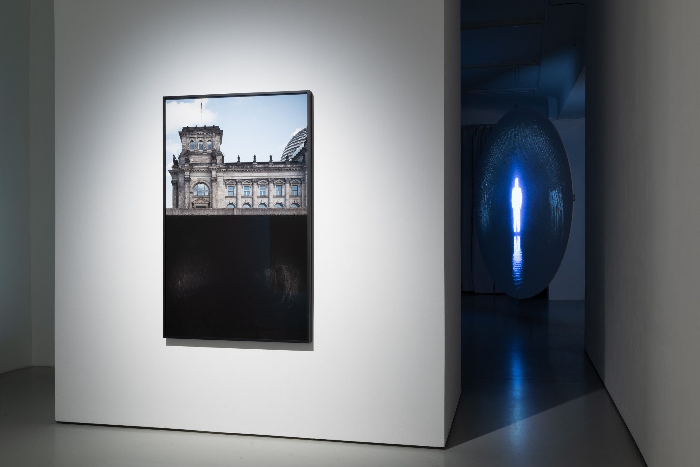 For Michel Serres, all relationships are constituted by three parties: the sender, the receiver, and the parasite who interrupts or corrupts the original message. Leinkauf’s presence is thick in this series. The show traces a narrative arc, from the glowing shapes of the cave wall, to the path out through the underground tunnels, to what the cave-dweller sees outside in the “real” world. Leinkauf himself treads parasitically along the skin between reality and representation, echoing Serres’s notion of the parasite. Although we are in his exhibition, his role is not so much that of a producer of images (a sender), or a recipient of cave shadows (receiver), but a critical praxis of interrupting the line, the transmission, between the two. Leinkauf’s work demonstrates a method of interruption as creative abuse. He features prominently throughout his practice, as if to demonstrate how to do something. His work makes clear the artifice of authority: that borders exist with violent effect, but only as an abstraction. Hence why, when some countries refuse to acknowledge borders, they are criminalised; when others break borders, they do so with the consent and support of the world that historically set those lines. While Leinkauf has never claimed to offer answers, in demonstrating that artifice is the condition of authority, he lends us a method for making that artifice together.