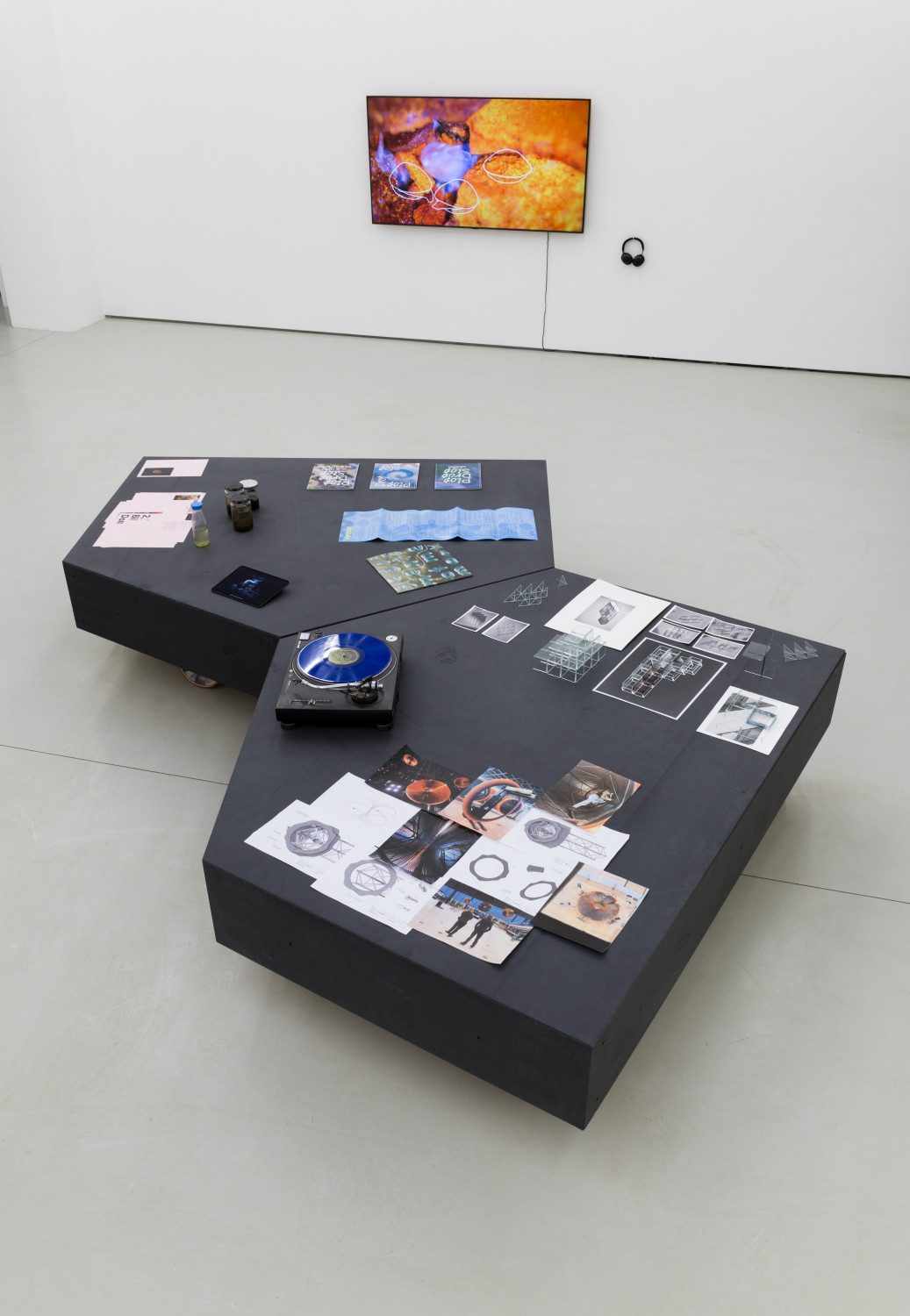 The exhibition Donner à Voir focuses on works grounded in research, experimentation, and collaboration. Julius von Bismarck, Anne Duk Hee Jordan, Noémie Goudal, Felix Kiessling, and Sinta Werner explore phenomena such as space, time, ecology, perception, and authority from their own distinct perspectives, often beyond anthropocentric frameworks. In addition to the works, a central platform gathers research materials, books, models, photographs, film excerpts, audio recordings, and other project-related documents. These materials extend the encounter with the works to include the processes of thinking, working, and research that led to their creation.
