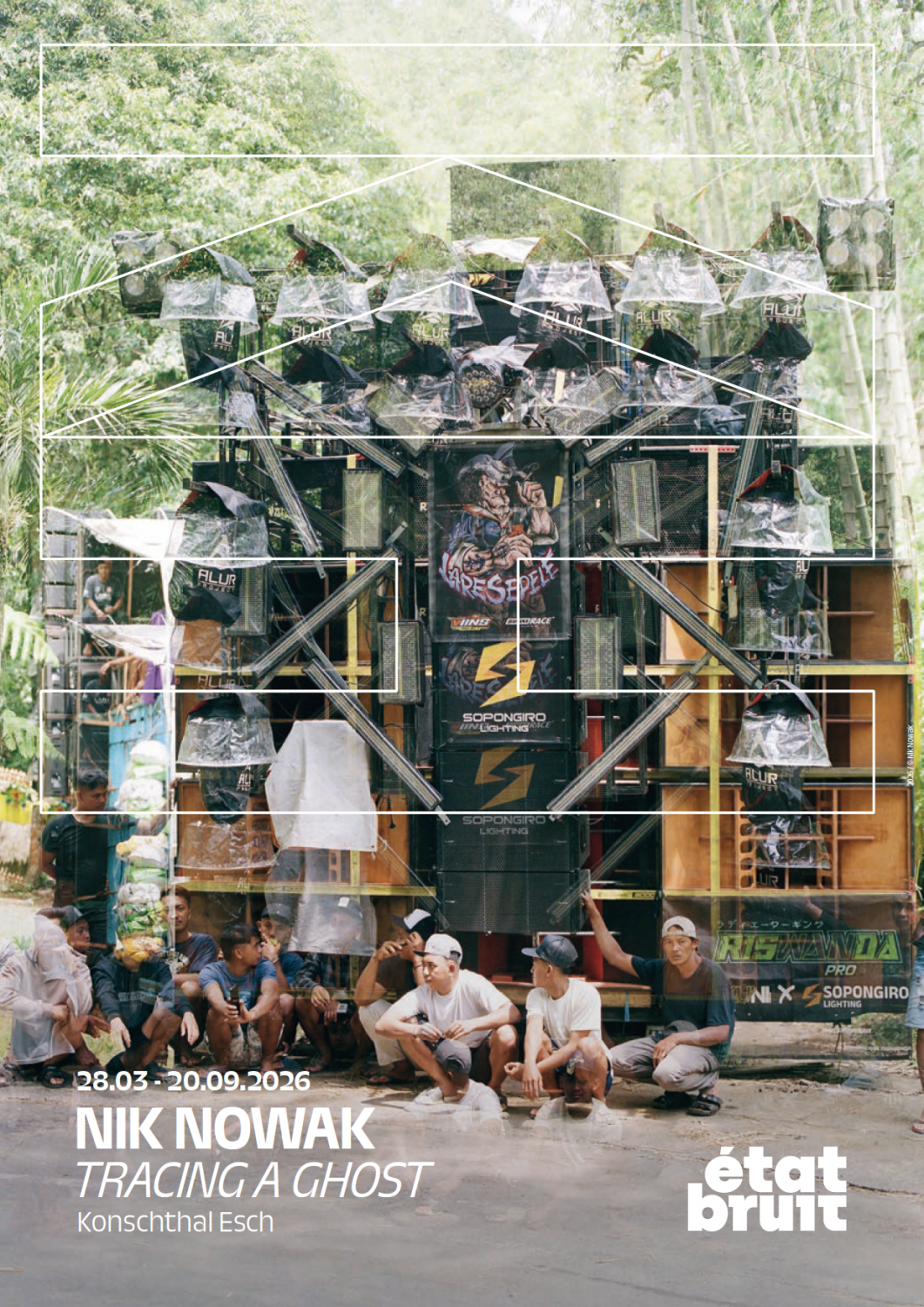 Nik Nowak’s new works explore powerful mobile sound systems in East Java (Indonesia) as tools of resistance, community, and cultural expression. At the centre are two new sculptures Hantu Sound System (2026), a sculptural vehicle bridging acoustic warfare and contemporary subculture, and Lontong Kupang (2026), an immersive sound installation evoking equatorial sonic environments, as well as a video documentation and new photographs.